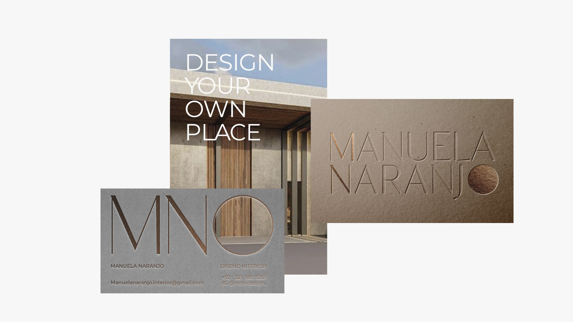Identidad visual para MNO Design, marca personal de Manuela Naranjo Ossa, interiorista con una visión holística especializada en crear espacios que proporcionen bienestar integral a sus clientes.
