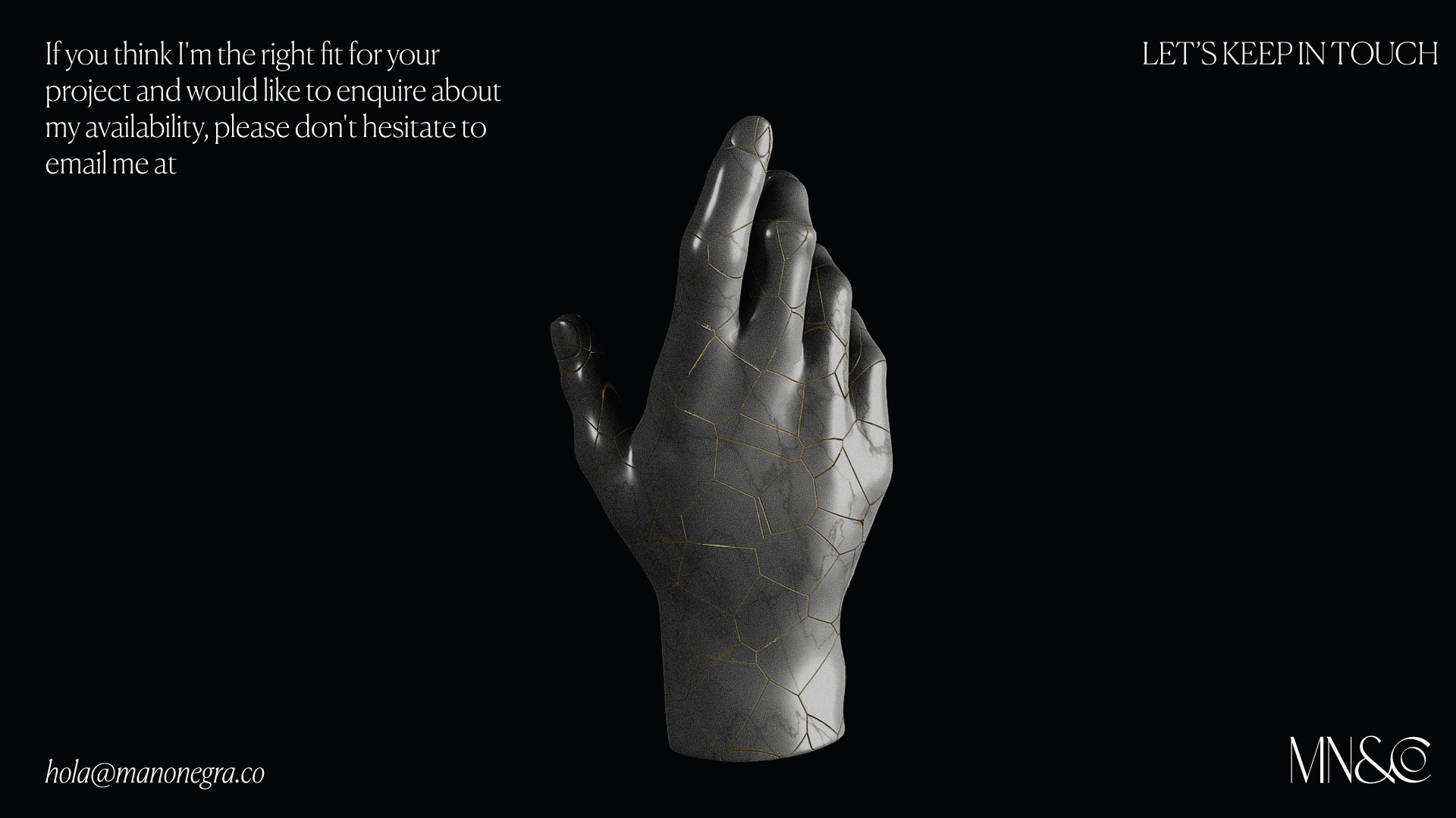 You can find more on Instagram. For work inquiry you're welcome to contact me through hola@manonegra.co