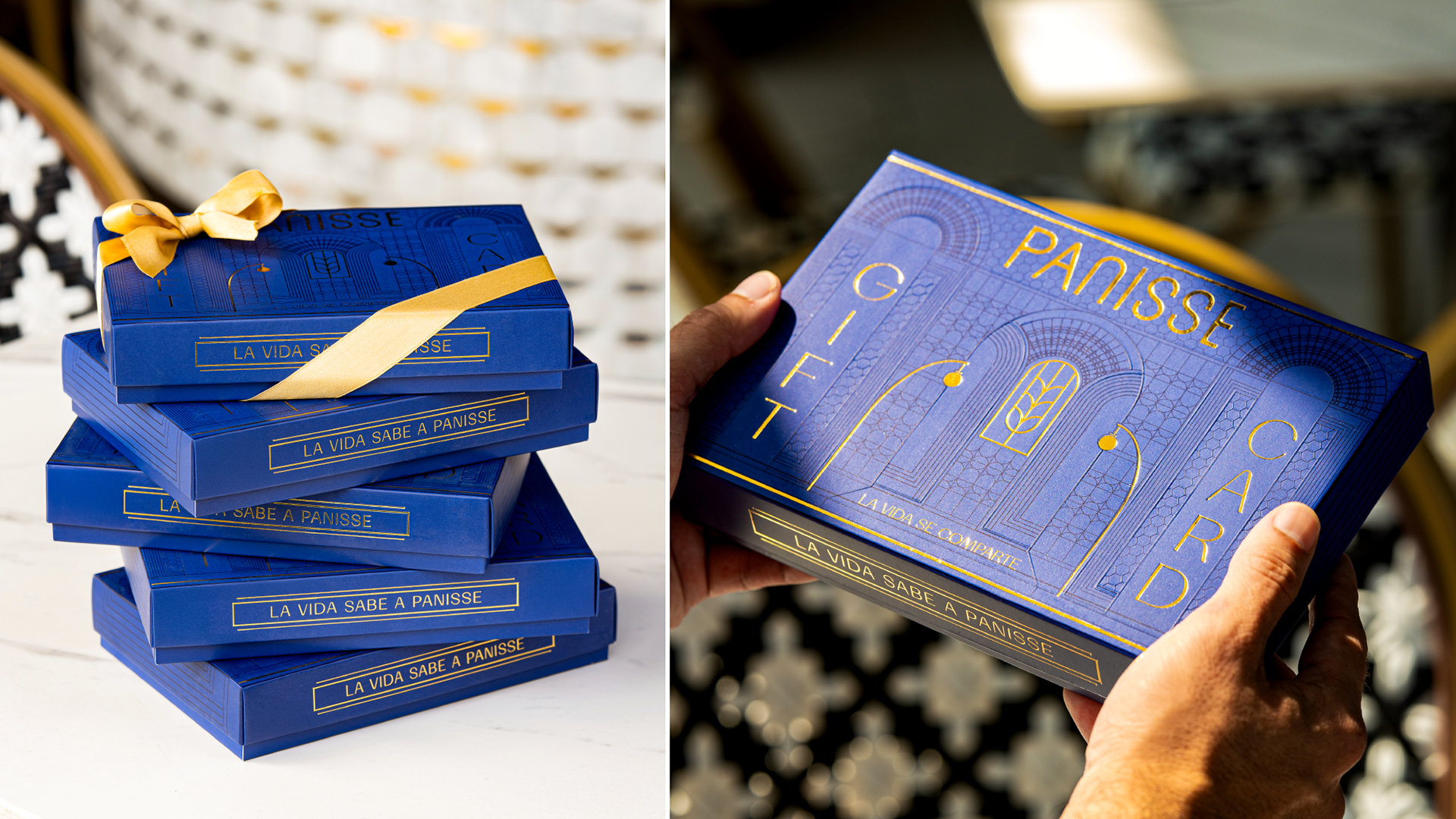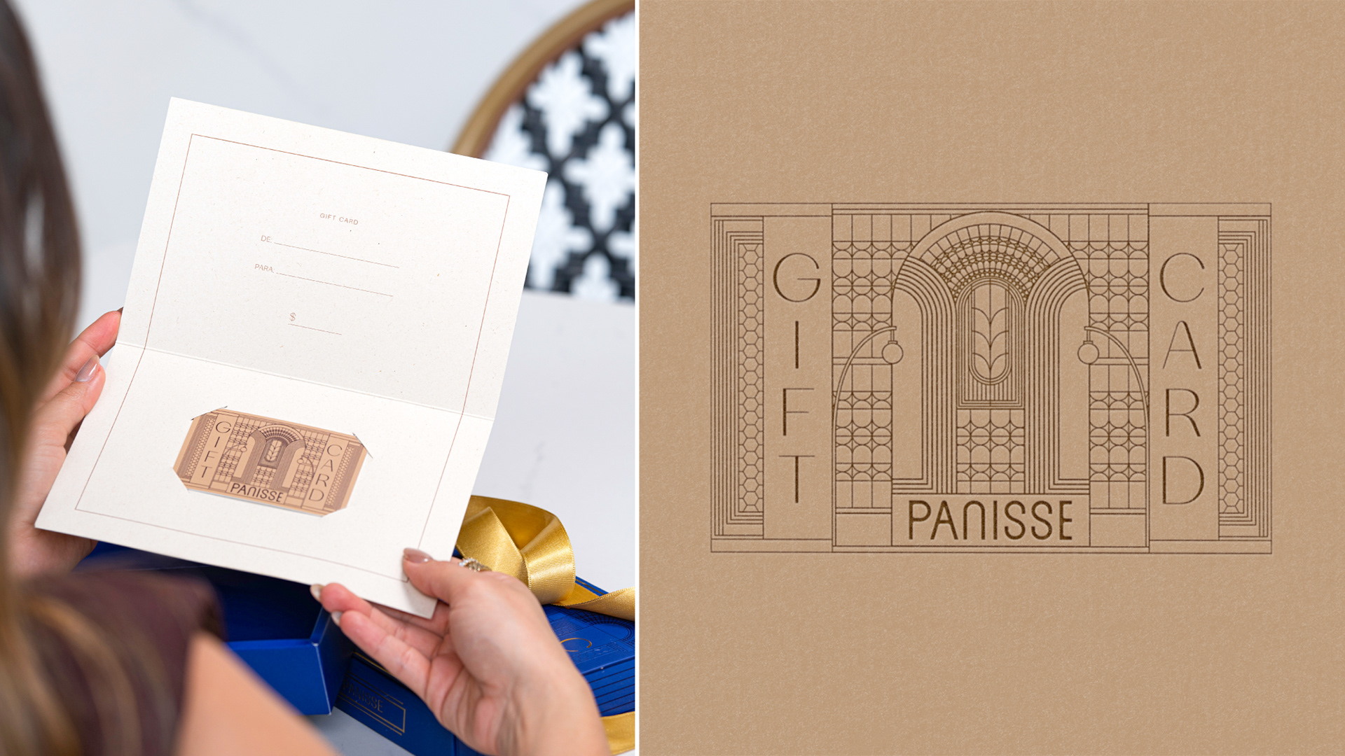 PANISSE is a contemporary bakery and café that reimagines the European pâtisserie experience in Pereira, Colombia — where time slows down, aromas linger, and tradition meets a warm, local soul. Inspired by the Old Continent yet deeply rooted in its territory, PANISSE invites guests into a sensory journey shaped by craftsmanship and quiet elegance. From this same spirit, we create the PANISSE Gift Card Packaging. Conceived as an extension of the space itself, it transforms a simple act of giving into a meaningful moment where everyday gesture into a small ritual. More than a container, it is a threshold — an object that opens like a doorway into the brand’s universe. Inspired by European Art Deco aesthetics and the bakery’s architectural language, the packaging elevates gifting into a refined ritual that reflects craftsmanship, heritage, and emotional value.the box features a deep blue and gold palette, architectural linework, and a symbolic emblem representing wheat and the archway.